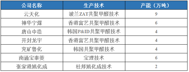 国内主要聚甲醛厂家生产技术及产能: