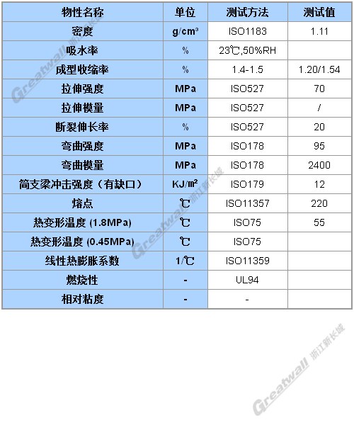 抗冲击性,流动性好,易脱模,快速成型,适用于注塑成型。